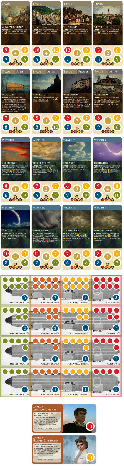 also at the very bottom some captain character cards that may be used for a d12 roll bonus. more for flavor than anything (and yes that is my second life avatar as captain griffin). i had actually wanted this idea for the early stages of Aether Captains, my first game, since a captain/commander can often get more out a ship due to their strengths/personality.